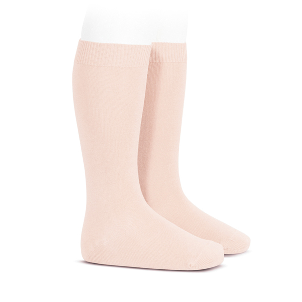 Meia pelo joelho de ponto liso.
