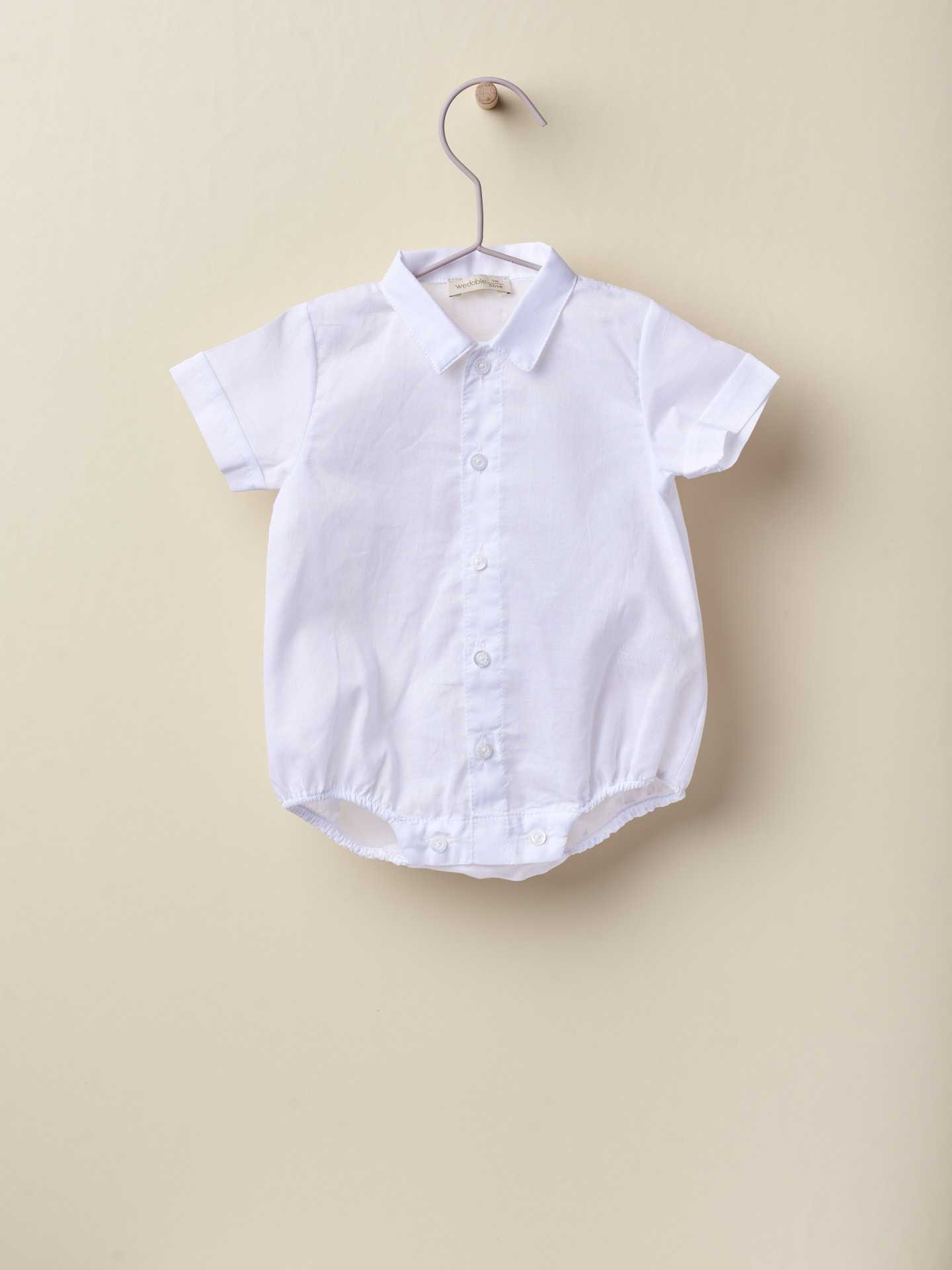 | Body camisa charmoso de manga curta em tecido de algodão leve, O body camisa LITTLE LOVE aperta na frente e entre as pernas com botões madre pérola.