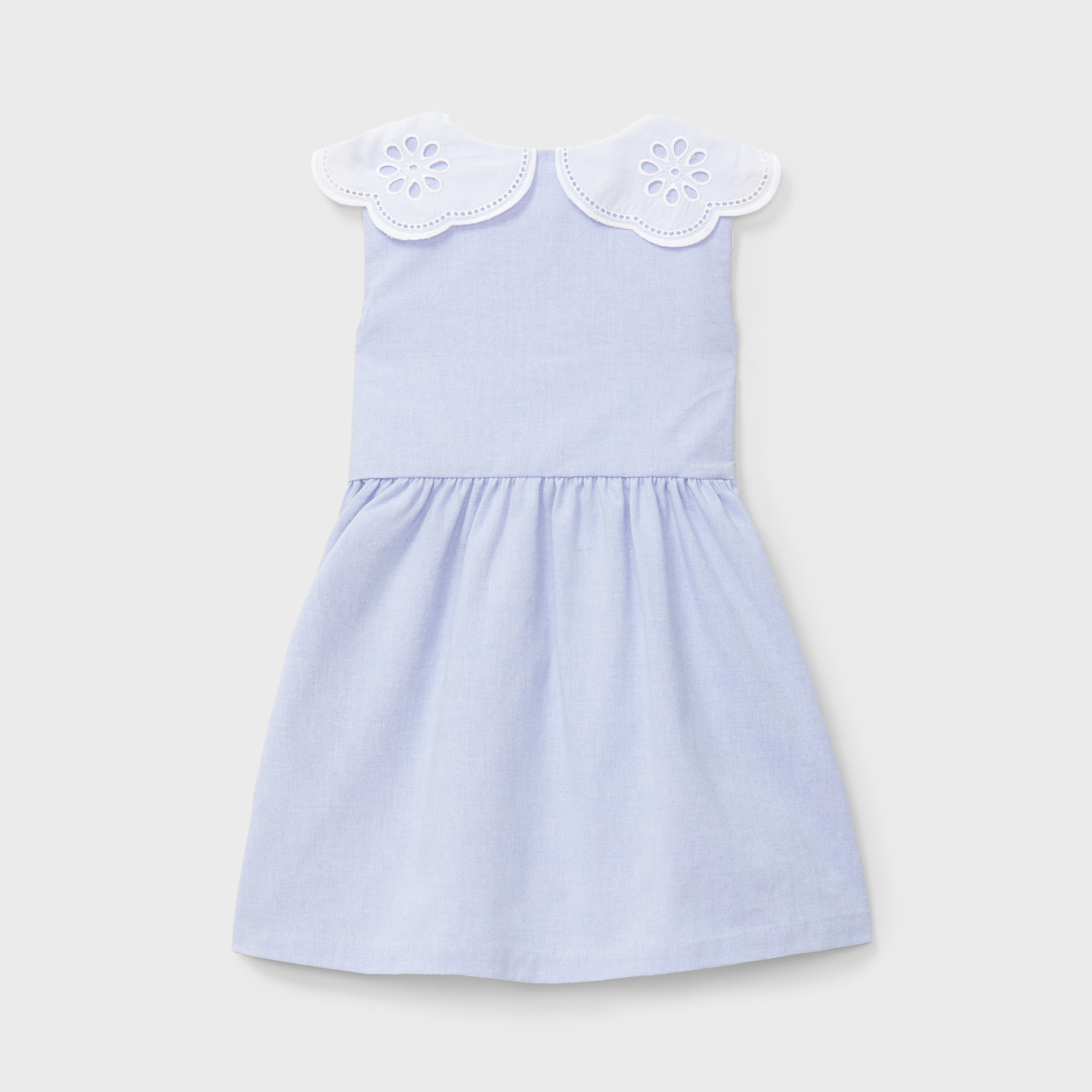 Vestido | Candy . Vestido em algodão com pormenor de laço no peito. Acabamento com folho na manga e bainha. Aperta com botões em madeira nas costas.