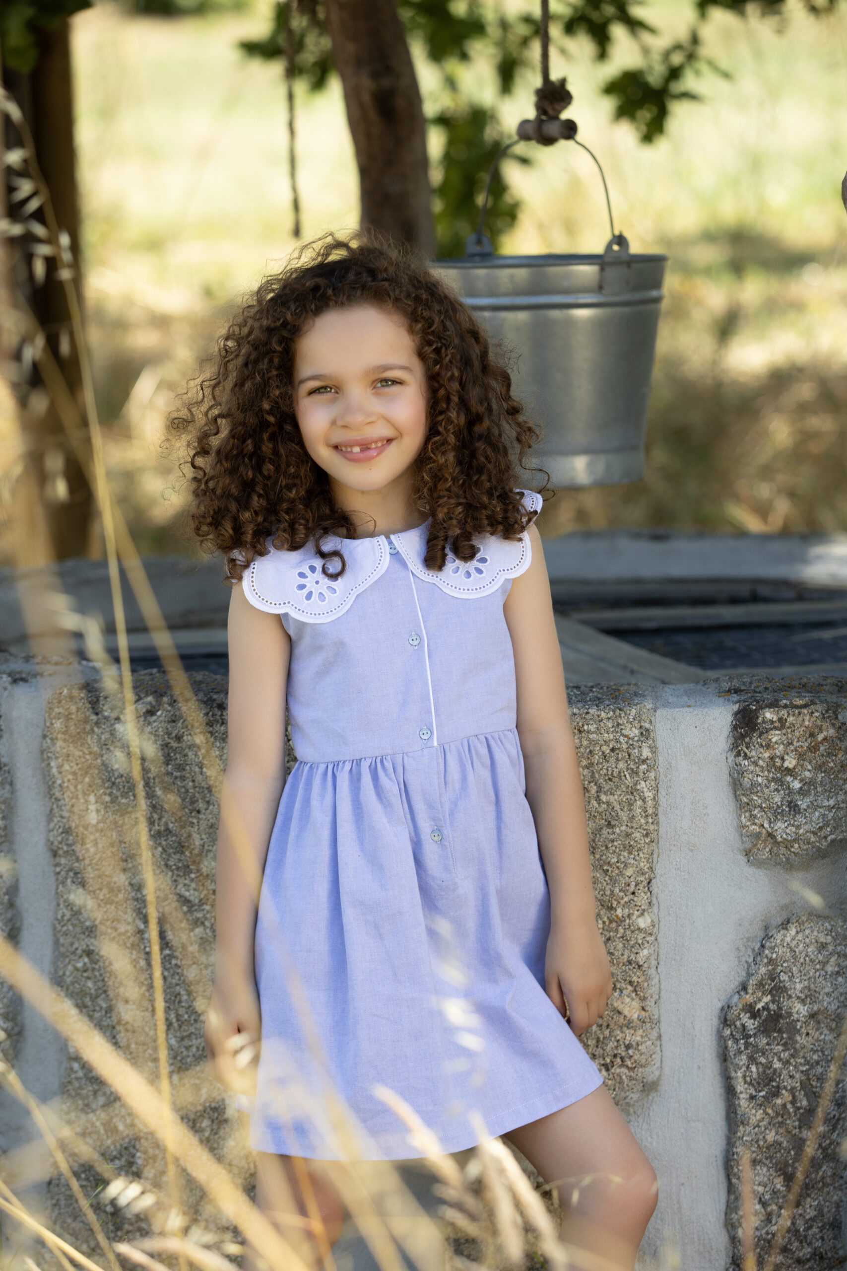 Delicado e elegante o vestido MYCONOS. Uma peça produzida em tecido de algodão suave, forrado em algodão leve.
