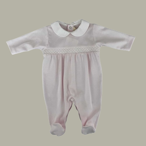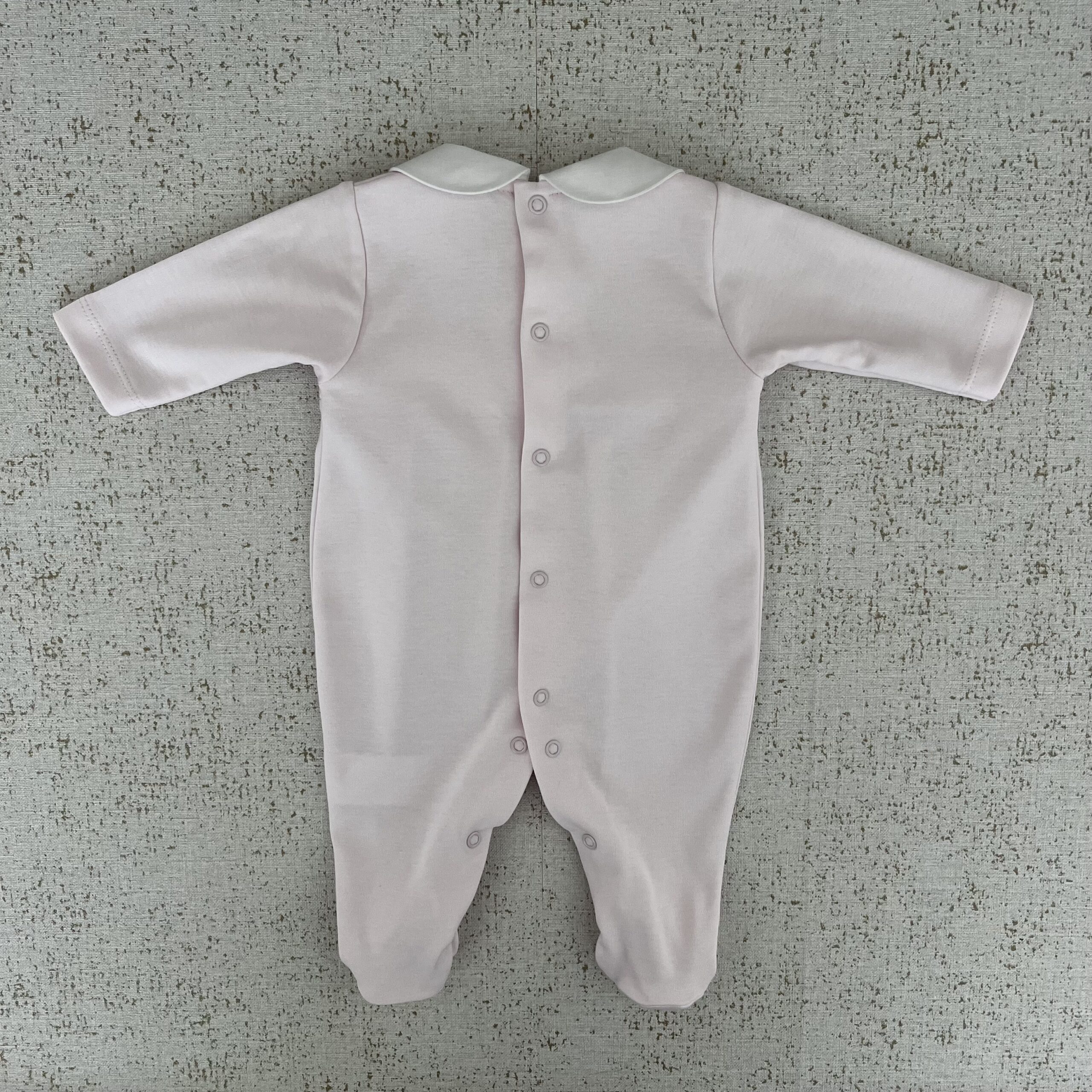 Babygrow em algodão suave, com favinhos de mel no peito. e gola Peter Pan Abertura entre pernas e nas costas com molas de pressão.
