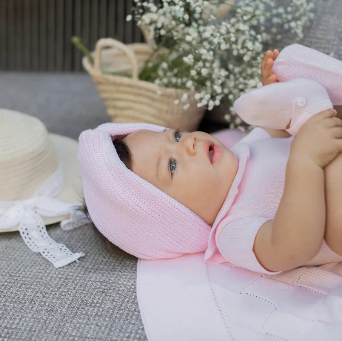 Fita de cabelo larga tricotada em malha de algodão suave, ideal para bebés , até aos 4 anos. Um toque único com o efeito laço no topo.
