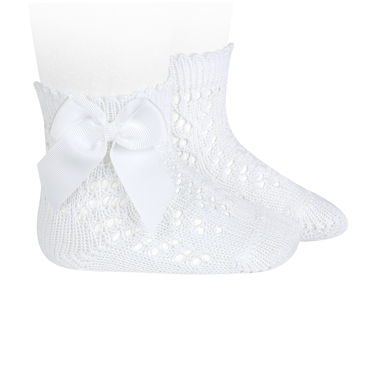 Casaco curto (bolero) de manga comprida tricotado em malha fina de algodão suave. O casaco curto de manga comprida fino, com gola redonda, aperta na frente com botões madre pérola. Produzido em Wholegarment, uma peça completa sem costuras, para maior conforto do seu bebé.