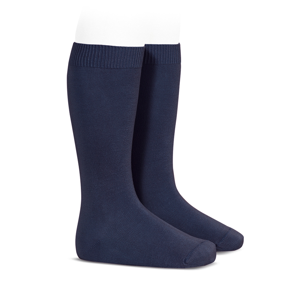 Meia pelo joelho de ponto liso.