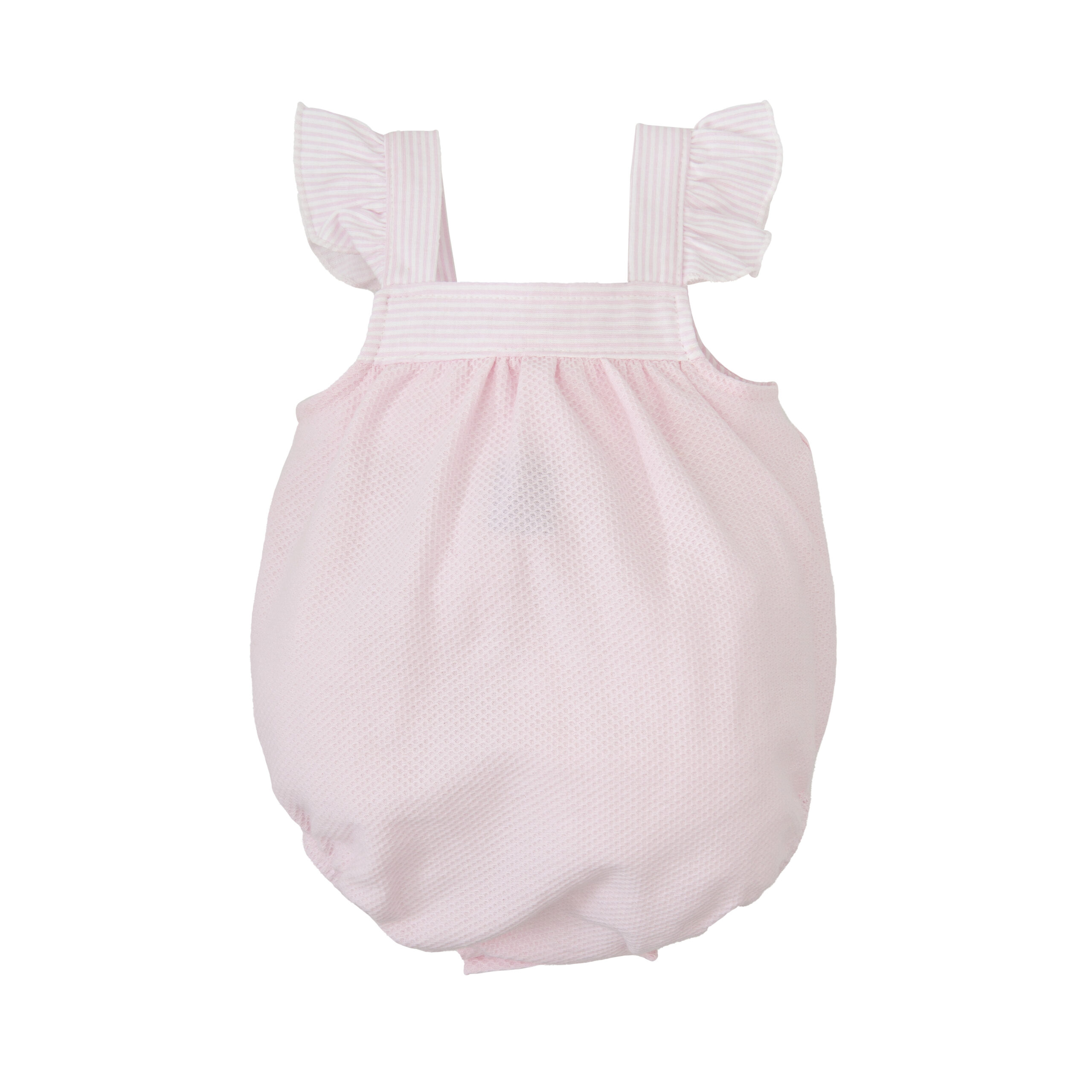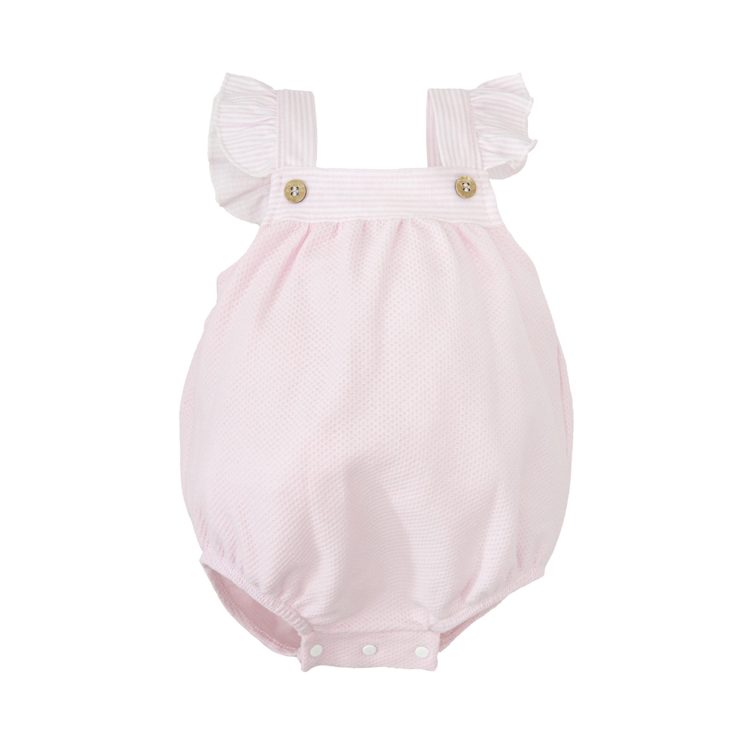 Fofo clássico em tecido rosa Piquet 100% algodão, molas de pressão entrepernas. Aperta no peito com botões.