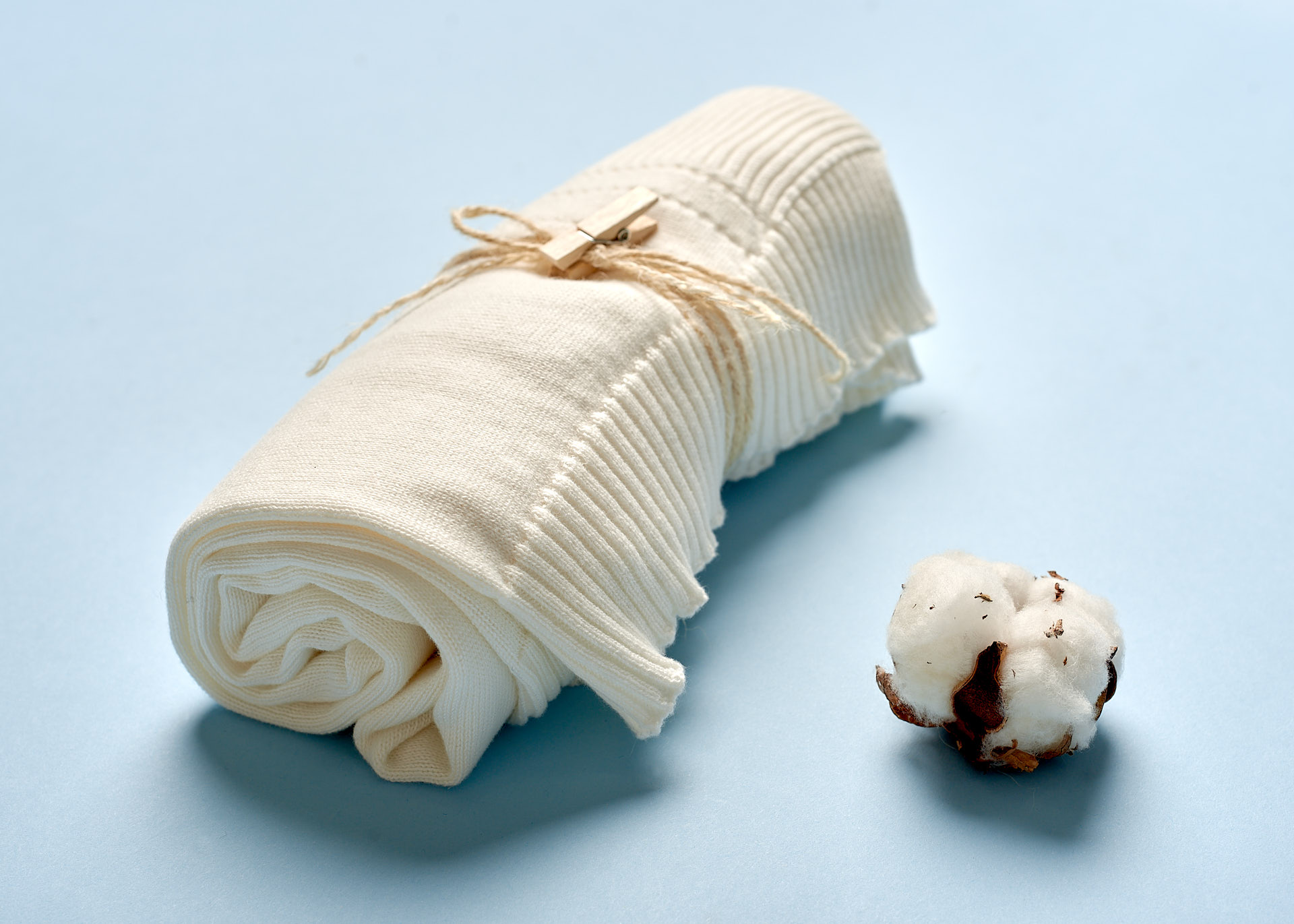Manta tricotada em malha de algodão suave, ideal para aconchegar o seu bebé.