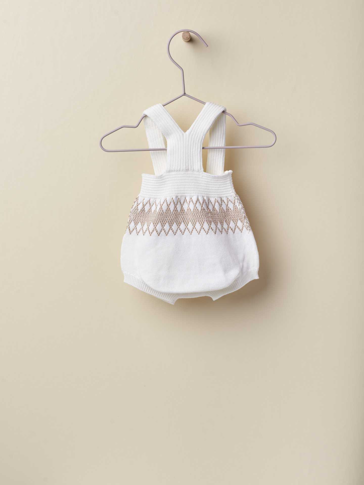CÁPSULA DE ALGODÃO ORGÂNICO Fofo de alças tricotado em malha fina de algodão orgânico, suave e respirável, ideal para bebés recém nascidos. O fofo de alças MOTHER’S LOVE aperta na frente nas alças com botões madre pérola. Produzido em Wholegarment, uma peça completa sem costuras, para maior conforto do seu bebé.
