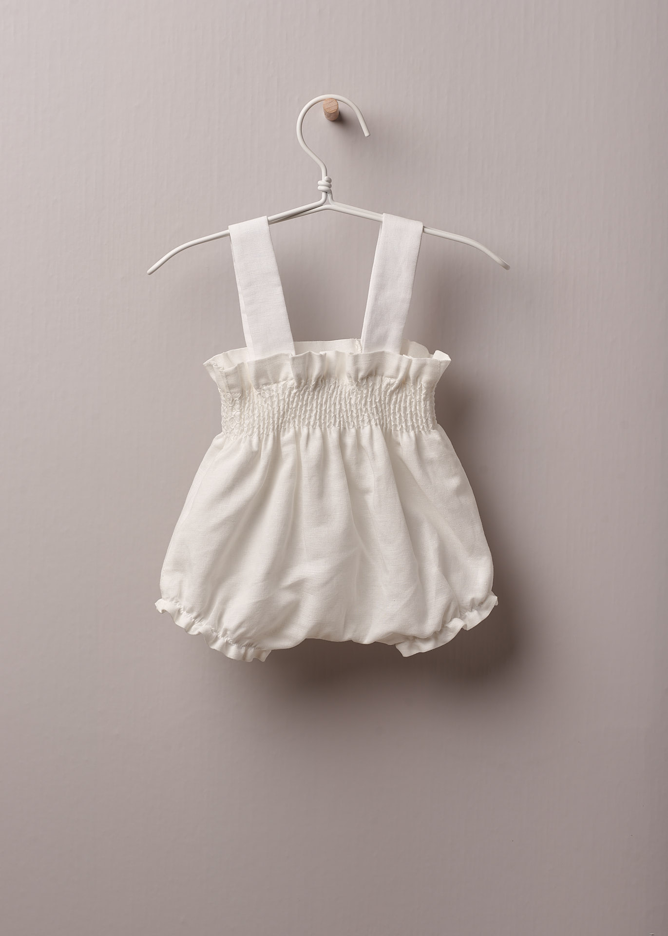 ROMANTIC BABY| Calção de alças em tecido leve de algodão orgânico, ideal para bebé . A cinta elástica suave permite obter o melhor conforto do bebé.