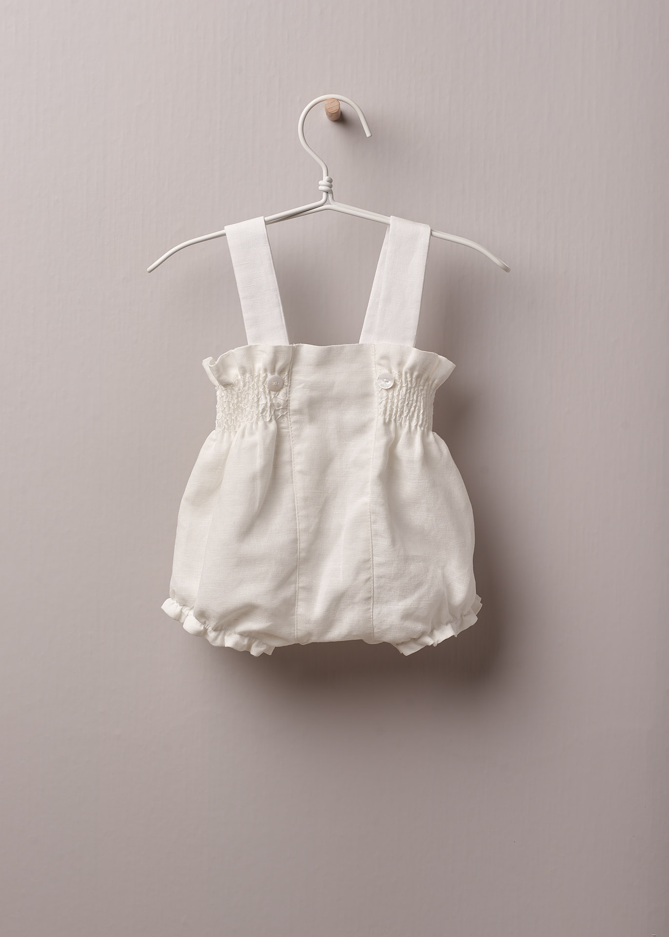 Fofo com alças ideal para bebé menino ou menina, dos 0 aos 24 meses. O fofo alças é produzido em malha de algodão leve. Aperta na parte da frente nas alças e entre as pernas com botões madre pérola. Produzido em Wholegarment, uma peça completa sem costuras, para maior conforto do bebé.
