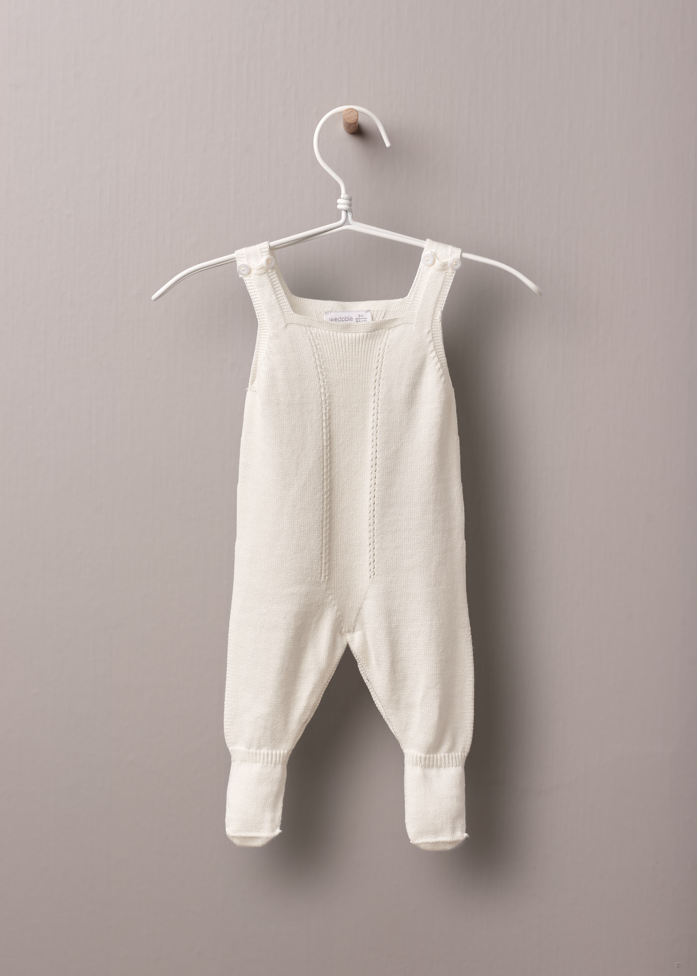 Fofo com alças ideal para bebé menino ou menina, dos 0 aos 24 meses. O fofo alças é produzido em malha de algodão leve. Aperta na parte da frente nas alças e entre as pernas com botões madre pérola. Produzido em Wholegarment, uma peça completa sem costuras, para maior conforto do bebé.