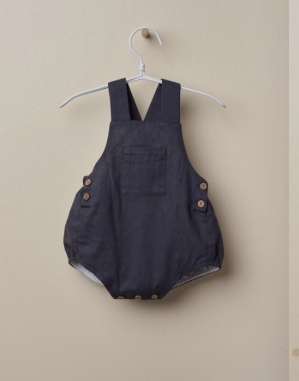 Jardineiras de alças com bolso á frente e cruzadas nas costas .São produzidas em tecido de algodão e linho, forradas em algodão leve para maior conforto. Aperta atrás, nas alças, e entre as pernas com botões de côco.