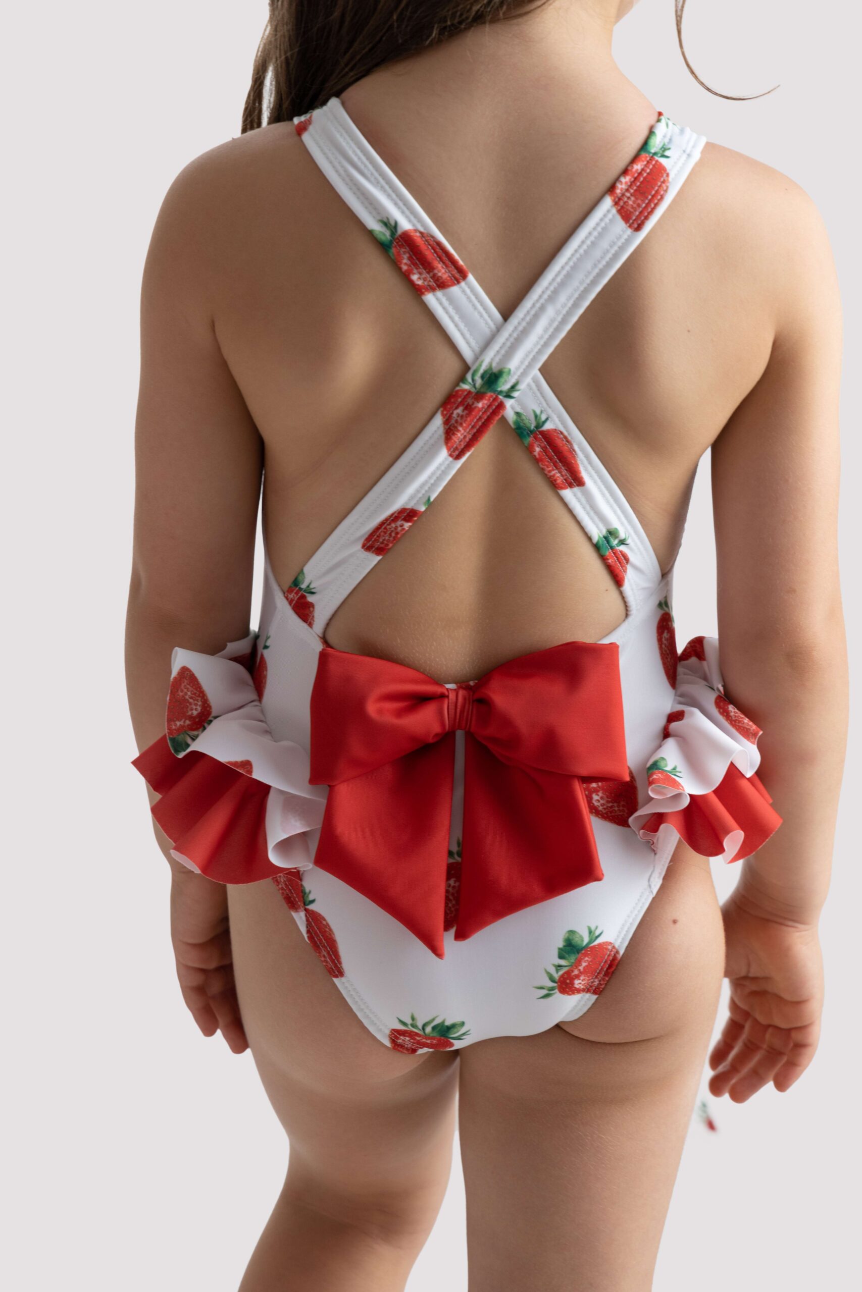 Fato de Banho Nice . Elegante fato de banho cruzado nas costas com laço e detalhe de folho duplo nas laterais,