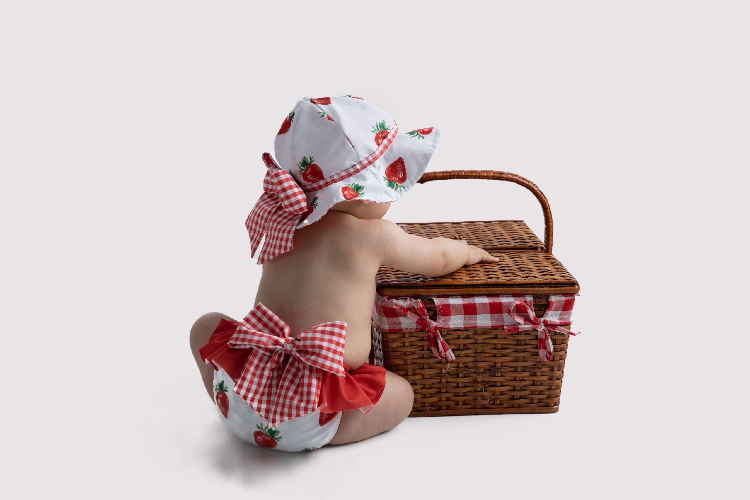 Bathingsuit Morangos . Tanguinha com folho largo e lindíssimo laço.