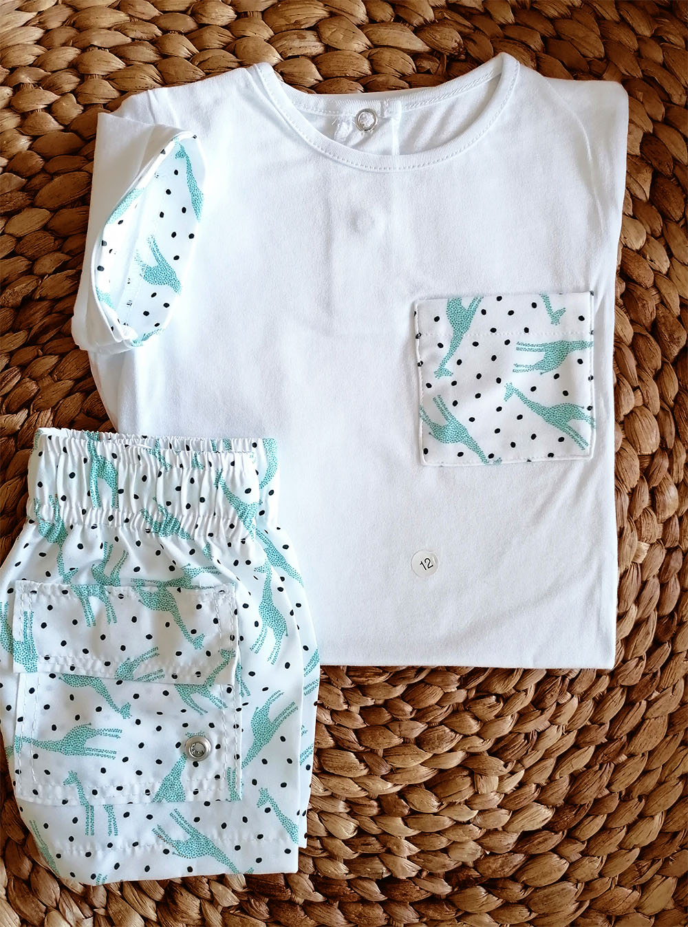 Coleção deserto. Conjunto para bebé composto por T-Shirt e Swimshorts Lycra