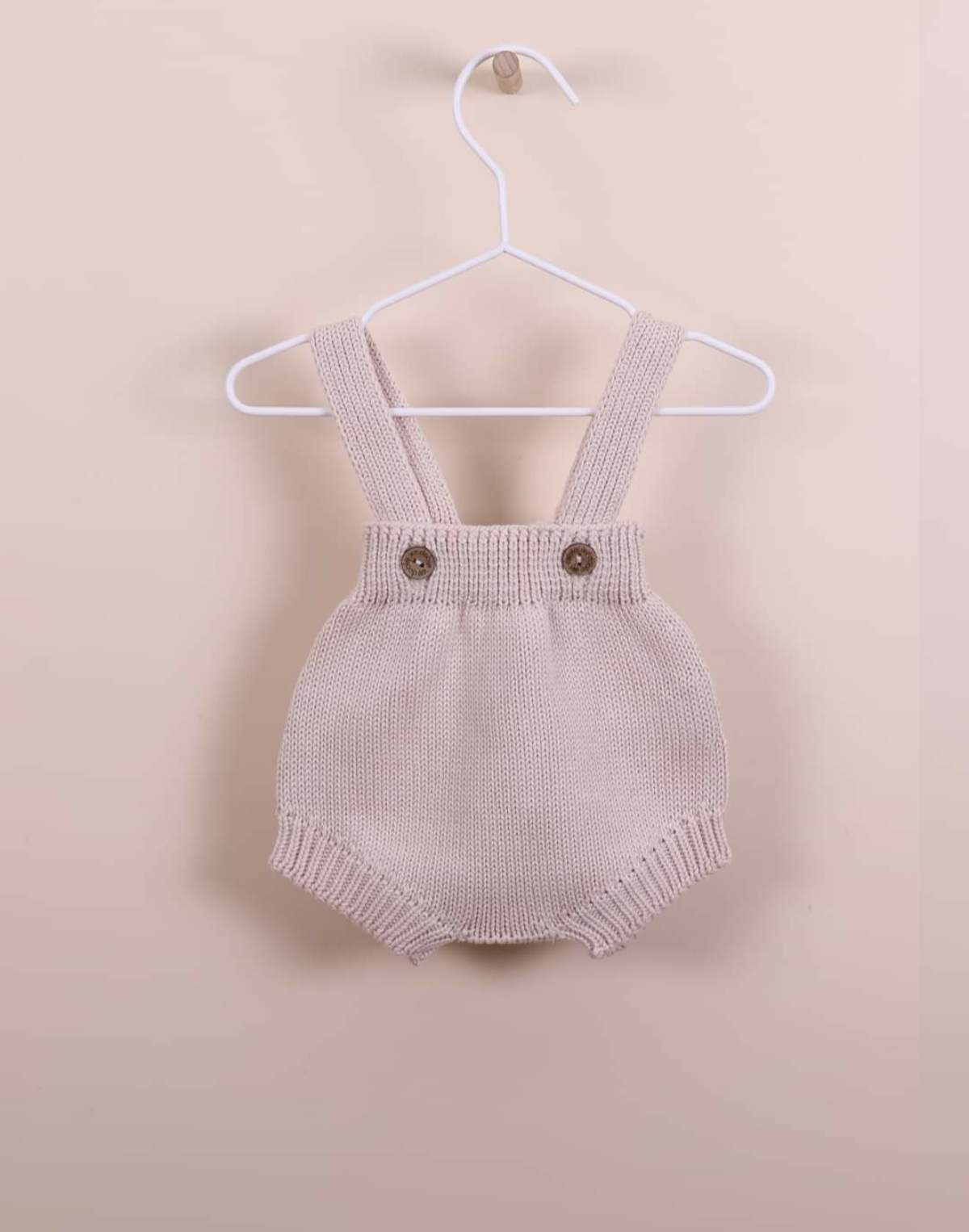 Fofo com alças ideal para bebé menino ou menina, dos 0 aos 24 meses. O fofo alças é produzido em malha de algodão leve. Aperta na parte da frente nas alças e entre as pernas com botões madre pérola. Produzido em Wholegarment, uma peça completa sem costuras, para maior conforto do bebé.